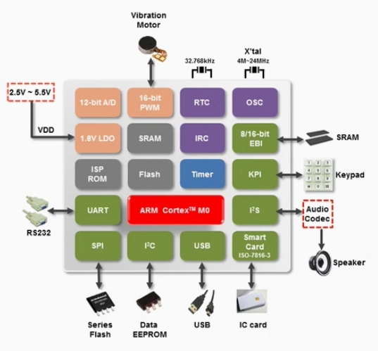 ? 內(nèi)核(Core) - ARM CortexTM-M0 - 工作頻率可達 50 MHz - 工作電壓:2.5V to 5.5V - 工作溫度:-40℃ ~ 85℃ ? 內(nèi)存(memory) - 128 KB應(yīng)用程序 - 內(nèi)嵌 16 KB SRAM - Configurable Data Flash - 支持在線電路更新ICP(In-Circuit Programming) - 支持在線系統(tǒng)更新ISP(In-System Programming) ? 模擬轉(zhuǎn)數(shù)字轉(zhuǎn)換器(ADC) - 提供 8 通道 - 12位分辨率 - 可達 800 kSPS(每秒取樣速率) - ±1℃ 準確度溫感計 |